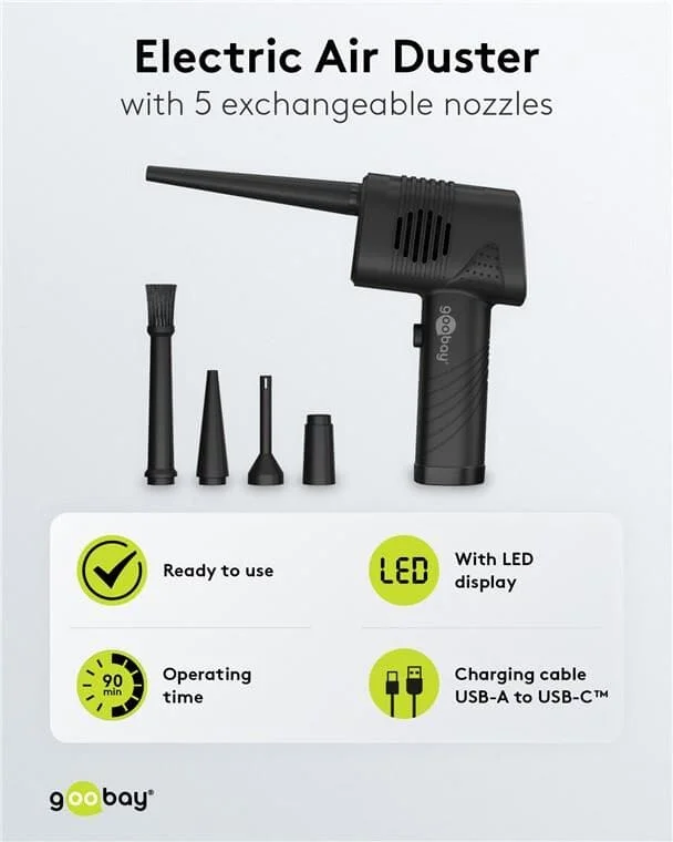 Goobay Elektrisches Staubgebläse, zur kontaktlosen Reinigung von PC-Zubehör und Haushaltsgegenständen