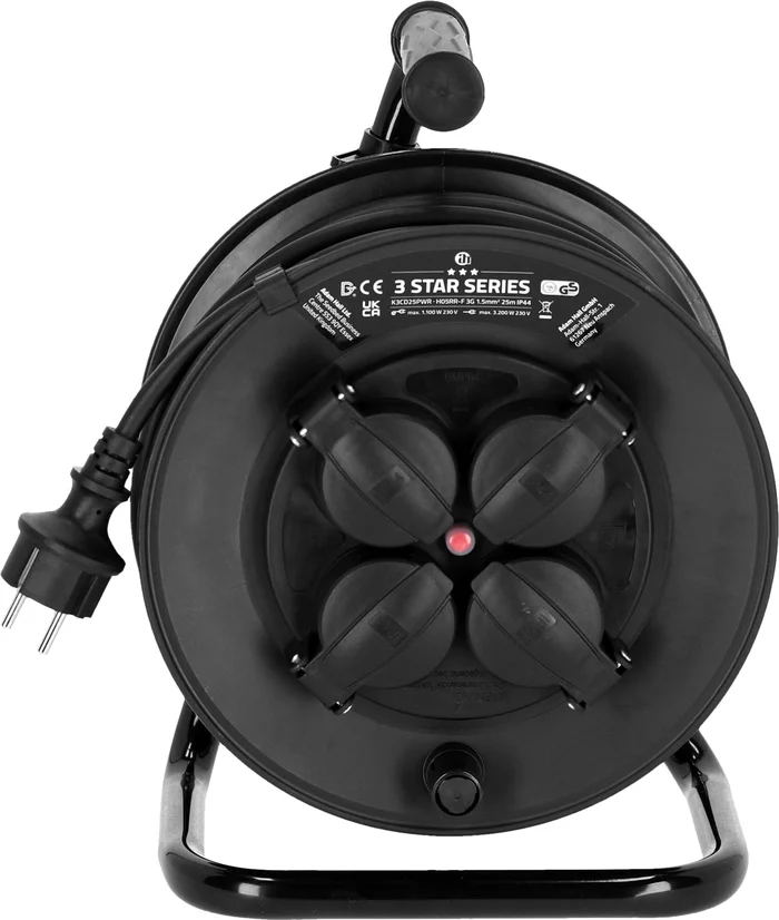 Adam Hall Cables 3 STAR CD 25 PWR – Strom Kabeltrommel 4 x Schuko IP44 H05RR-F, 25 m