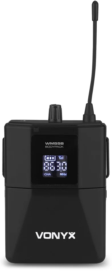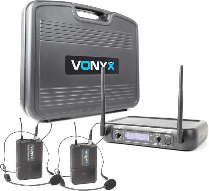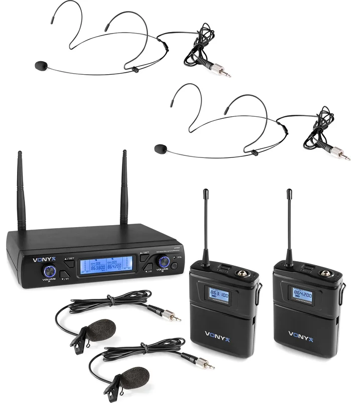 Vonyx WM73H 2-Kanal UHF Drahtlos-Mikrofonsystem mit 2x Bodypacks und Display