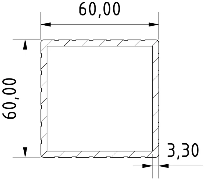 Bullstage Alu-Profilrohr Vierkant 60x60x3mm Länge 3,5 mtr.