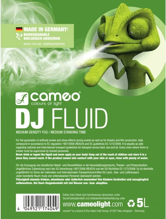 Cameo DJ FLUID 5L – Nebelfluid mit mittlerer Dichte und mittlerer Standzeit 5l
