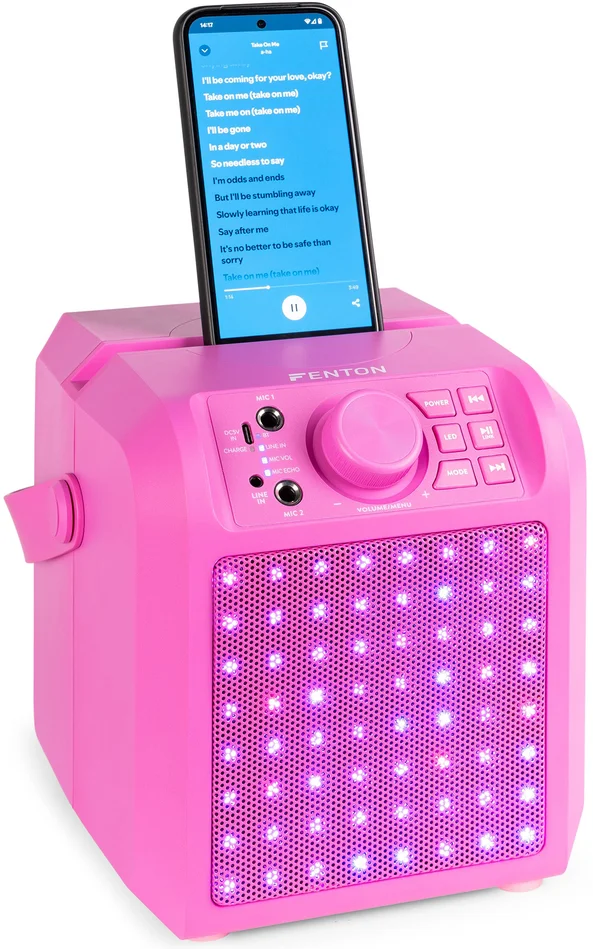 Fenton KAR50P Karaoke-Lautsprecher mit LED-Lichteffekt Rosa