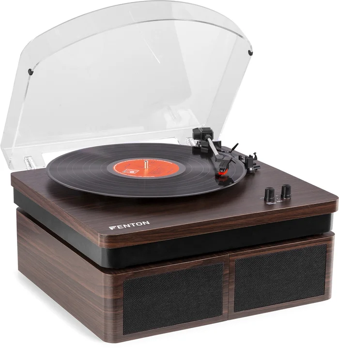 Fenton RP168DW Plattenspieler mit Lautsprechern Dunkles Holz