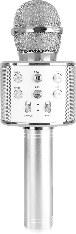 Max KM01 Karaoke-Mikrofon mit eingebauten Lautsprechern BT/MP3 Silber