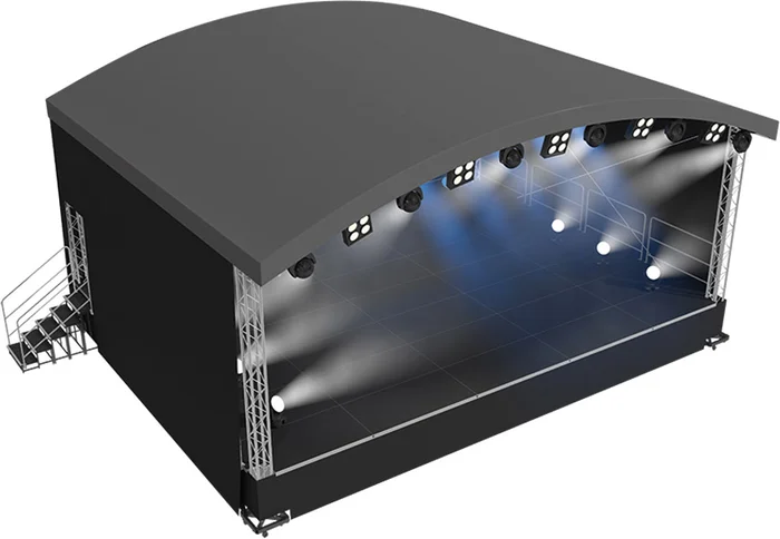 Naxpro-Truss Rundbogendach-Bühne AR04 – 4,00 x 2,99/3,60 x 3,99 m (BxLxH)