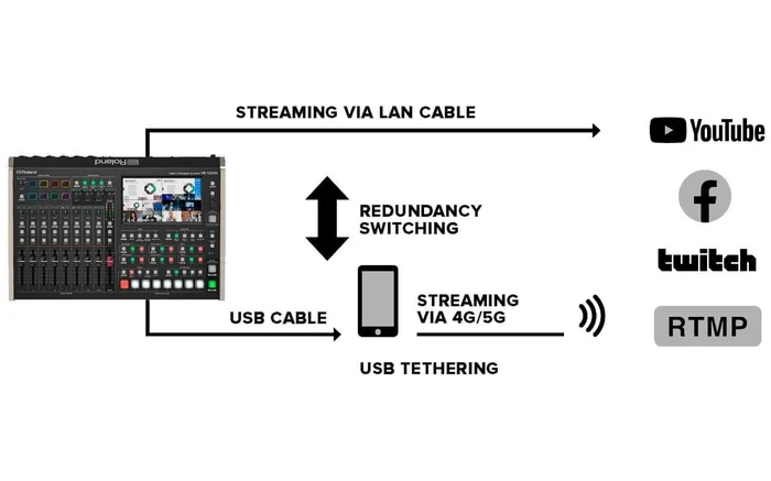 ROLAND VR-120HD – 12-Kanal Direkt-Streaming AV-Mixer (7″ Touchscreen – 3G-SDI & HDMI – 42-Kanal Audio-Mixer