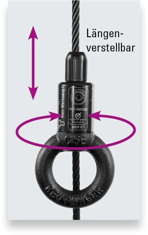 SAFETEX Drahtseilhalter mit integriertem schwarzem Ring, Typ 60, BLACKLINE
