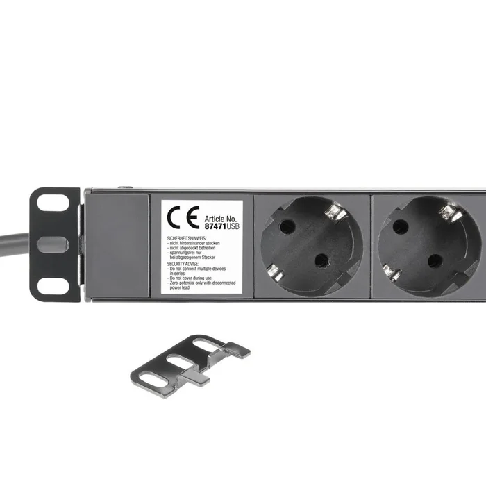 19″ 1HE Steckdosenleiste 8-fach mit Schalter und 2 USB-Ladebuchsen
