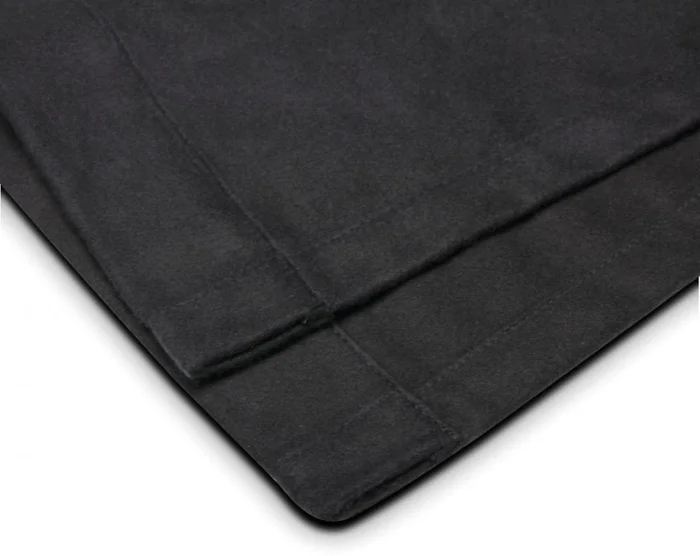Blickdichter, schwarzer Bühnemolton in flammhemmend imprägnierter Ausstattung (B1 nach DIN 4102) und 300-Gramm-Qualität. Die Stoffe sind mit einem selbstklebenden Klettband ausgestattet , der Stoff lässt sich damit sehr einfach an Podesten oder änlichem anbringen und auch jederzeit wieder lösen.