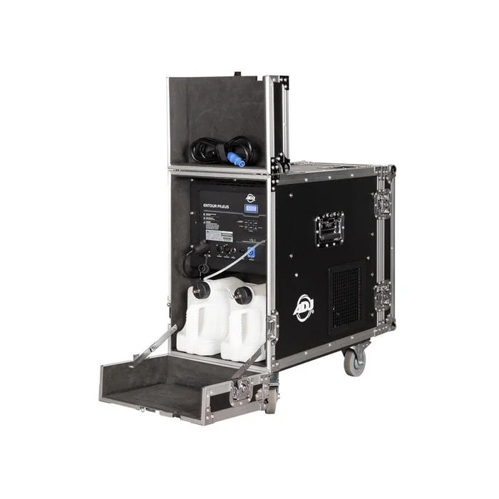Die Entour Pileus, die neueste Ergänzung der renommierten Entour-Serie von ADJ, ist eine vielseitige, professionelle multifunktionale Nebel- und Faze-Maschine, die auf Großserienproduktionen zugeschnitten ist. Untergebracht in einem robusten Flightcase mit feststellbaren Rollen, bietet diese robuste Maschine die Flexibilität, entweder kraftvolle Nebelausbrüche oder einen feinen, faze-artigen Nebel mit Standard-Nebelfluid auf Wasserbasis zu erzeugen. Ausgestattet mit einer leistungsstarken 1650-W-Heizung, einem Dispersionsgebläse mit variabler Drehzahl und einem fortschrittlichen Flüssigkeitsverbrauchsmanagement gewährleistet es eine präzise Leistungssteuerung und einen Dauerbetrieb von bis zu 35 Sekunden. Mit einer bemerkenswerten Leistung von 60.000 Kubikfuß pro Minute kann der Entour Pileus selbst die größten Veranstaltungsorte problemlos füllen. Mit zwei 5,6-Liter-Flüssigkeitstanks, einer ultraschnellen Aufwärmzeit von 16,5 Sekunden, mehreren Steuerungsoptionen, 5-poligem DMX-Ein-/Ausgang und einem hochmodernen Selbstreinigungssystem ist er der perfekte stimmungsvolle Generator für Touren und Großveranstaltungen.