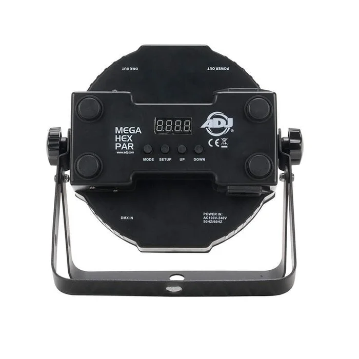 Der ADJ Mega Hex Par ist ein kompakter, flacher Par, der für die Beleuchtung von Scheinwerfern und Bühnen entwickelt wurde und Farbe und Spannung in jede Veranstaltung bringt. Diese Leuchte verfügt über das patentierte „Sit-Flat“-Design von ADJ, so dass sie ohne Scherenjoch direkt auf dem Boden oder in der Traverse sitzen kann, da die Strom- und DMX-Ein- und Ausgänge an der Seite der Leuchte und nicht an der Rückseite montiert sind.