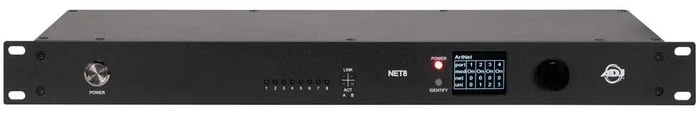 Die Konfiguration von NET 8 ist ein Kinderspiel, da Sie zwischen DHCP- und statischen IP-Adresseinstellungen wählen können. Diese Anpassungsfähigkeit stellt sicher, dass sich der Knoten nahtlos in Ihre bestehende Netzwerkinfrastruktur integriert. Was NET 8 auszeichnet, ist seine benutzerfreundliche Oberfläche, die Konfigurationsanpassungen über das Gerätemenü oder den Komfort eines Webbrowsers ermöglicht. Ganz gleich, ob Sie vor Ort sind oder Ihr Beleuchtungssystem aus der Ferne verwalten, mit NET 8 haben Sie die Kontrolle auf Knopfdruck. NET 8 ist ein 19-Zoll-Rack-Knoten, mit dem Sie von einem DMX-Universum auf acht DMX-Universen erweitern können (bei Verwendung mit einem Artnet-kompatiblen Beleuchtungscontroller).