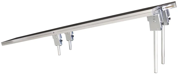 Die Admiral Ramp-Unterstützung ist eine flexible Unterstützung für den Bau einer schrägen Rampe, die an einer festen Bühne befestigt wird. Je nach Höhe der Bühne besteht die Möglichkeit, die Rampe aus zwei oder drei StageDex-Stücken zu konstruieren. Die Anzahl der aneinander gereihten StageDex und die Höhe der Bühne bestimmen die Neigung der Rampe. Die Admiral Rampenstütze ist für Bühnen mit einer Höhe von 40 cm bis 140 cm geeignet, wobei die Höhe um 20 cm zunimmt. Die Rampenstützen sind so konstruiert, dass sie immer die Standard-StageDex-Füße verwenden. Es sind drei Typen von Rampenstützen erhältlich, die viele verschiedene Kombinationen ermöglichen. Für den Bau einer Rampe mit der Admiral Rampenstütze ist ein Einhängeprofil erforderlich. Bei der Rampenstütze wird das erste Deck an der Bühne eingehängt. Stützen für 2 oder 3 Dex Abhängig von der Länge Ihrer gewünschten Rampe können Sie eine Rampenstütze für zwei oder drei Decks wählen. Sehen Sie sich unsere Bedienungsanleitung im Download-Bereich an, um Ihre Wahl zu treffen. Hinweis: Die Admiral Ramp Stützen sind dazu gedacht, eine Rampe für den Transport von Koffern und/oder anderen leichten Gegenständen zu bauen.