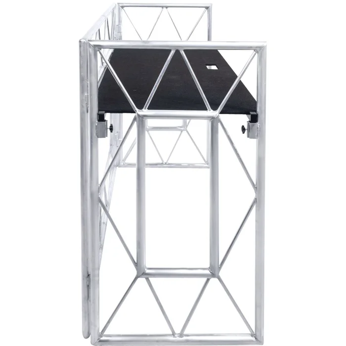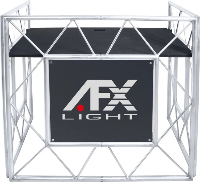 Dieser professionelle, aus Aluminium gefertigte Tisch bietet eine ideale Lösung für DJs und Alleinunterhalter. Er ist sehr schnell aufgebaut, leicht und dennoch extrem stabil und standfest. Darüber hinaus bietet der AFX DJ-BOOTH die Möglichkeit, das eigene Logo vorne zu platzieren.Technische Daten:Maße (L/B/H): 1270 x 610 x 1155mmDurchmesser Gestänge: 32mmDurchmesser Querstreben: 12mmGröße Frontboard: 642x562x6mmBelastbarkeit: 30kgGewicht: 18,6kg