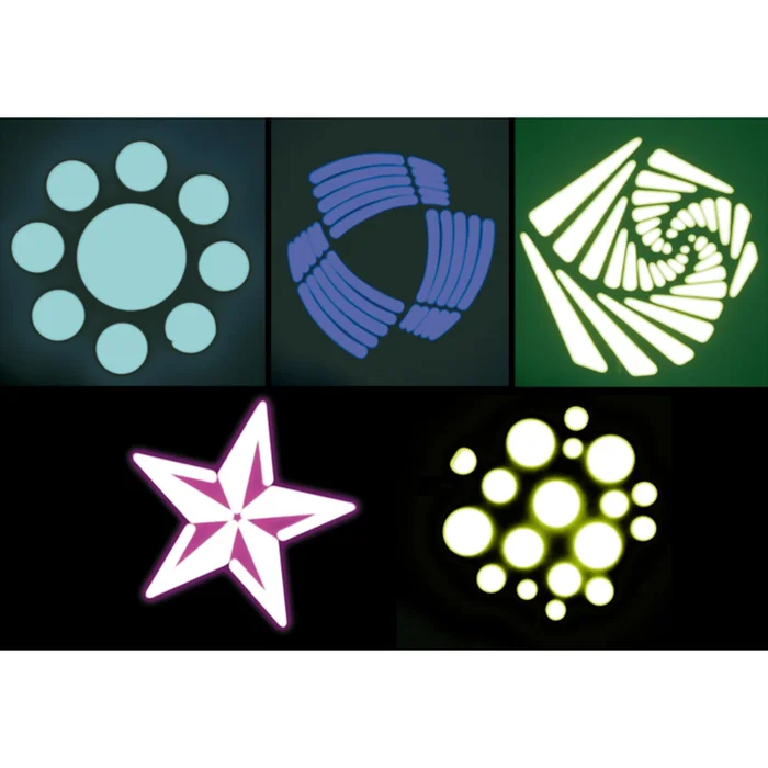 - 1x Goborad mit 6 austauschbaren rotierenden Gobos + offen
