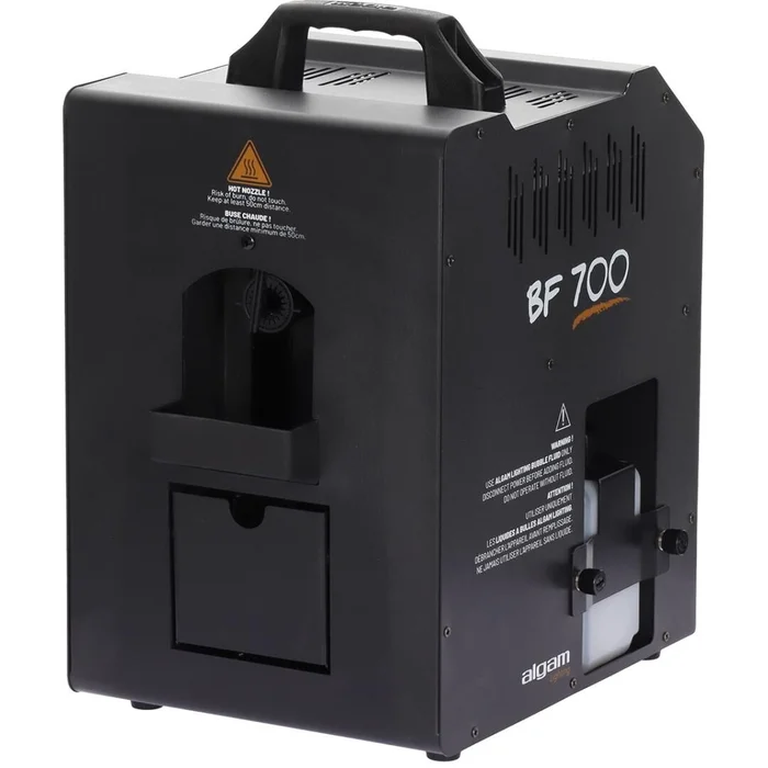 Dank der kabellosen Fernbedienung und des benutzerfreundlichen Bedienfelds ist die Steuerung der BF700 denkbar einfach. Die zwei 0,5-Liter-Tanksermöglichen einen Dauerbetrieb von bis zu 20 Minuten. Das robuste Metallgehäuse und der praktische Tragegriff garantieren Zuverlässigkeit und Mobilität, sodass Sie die Maschine problemlos zu jeder Veranstaltung mitnehmen können.
