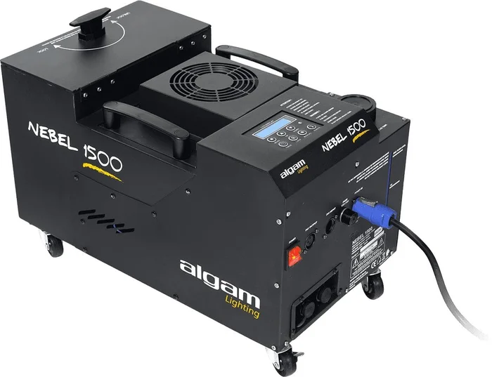 Die NEBEL 1500 ist eine überraschend einfach zu bedienende Bodennebelmaschine. Sie ist kompakt und auf Rädern montiert, um den Transport und die Mobilität zu erleichtern. Mit einem 1-Liter-Flüssigkeitstank und einem 3,8-Liter-Wassertank benötigt dieses kleine Wunder nur 8 Minuten zum Aufheizen, um den Boden bei Ihren Indoor-Events wie Hochzeiten, privaten Partys, Modenschauen, Konzerten usw. mit dichtem Nebel zu bedecken Das Bedienfeld ermöglicht eine einfache Programmierung der verschiedenen Modi und Einstellungen (Auslöseintervalle und -dauer, Autotimer, Wurfkraft und Rauchvolumenausgabe) über das LCD-Display. Über einen Powercon-Anschluss für die Stromversorgung verfügt der NEBEL 1500 auch über eine DMX-Fernbedienung, ganz zu schweigen von der HF-Fernbedienung, mit der Sie mit einem einzigen Tastendruck Nebel auslösen können.