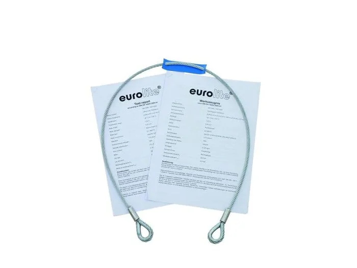 Die EUROLITE Anschlagseile bzw. Sicherungsseile entsprechen den aktuellen berufsgenossenschaftlichen Vorschriften aus der BGI 810-3:2007-03 Lasten über Personen und wurden auf Grundlage der europäischen Normen DIN EN 12385-4:2008-06 und DIN 56927:2009-03 konstruiert.