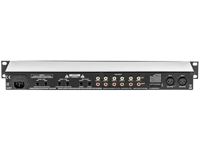 - Frequenzgang: 20 Hz – 20 kHz (+0, -1 dB) (Kanal 1-6 in, Zonen Ausgang)
