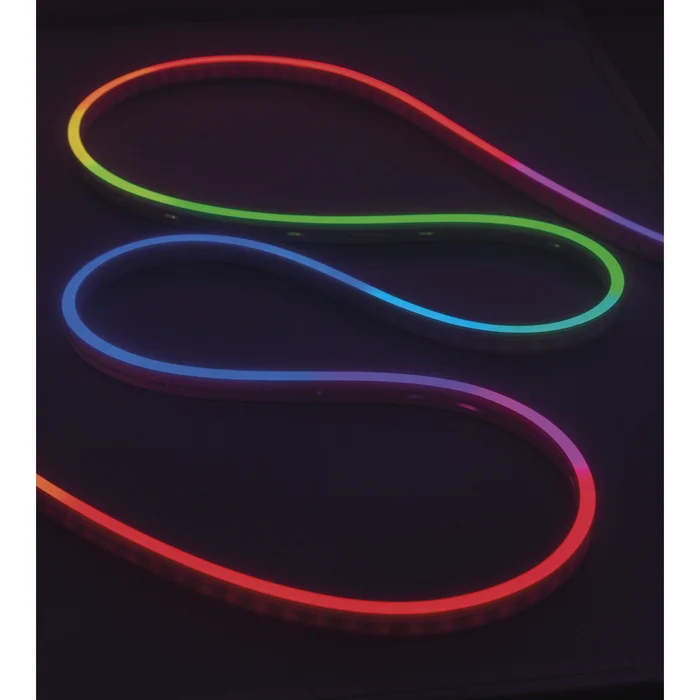 Beschreibung: Der Havana Neon 1018 RGB Pixel ahmt den Effekt der traditionellen Neonschilder nach und kombiniert ihn mit einer Pixelsteuerung, wodurch die dynamischsten Flows und pixeligen Effekte erzielt werden können. Der flache und diffusive Silikonmantel mischt die Farben perfekt und erzeugt einen nahtlosen und gleichmäßigen Lichtaustritt. Bis zu 17 m Havana Neon können miteinander verbunden werden, so dass Sie die kreativsten Setups und Installationen erstellen können. Technische Daten: Anzahl Leuchtmittel /m: 60LED Farbe: RGBLeuchtmittel System: WS2811Lichtstrom (gesamt): 2150 lmStromversorgung: 24 V DCStromverbrauch: 72 WLeistung/1 m: 14.4 WLänge (m): 5 mBreite (mm): 10 mmIP-Schutzart: IP67