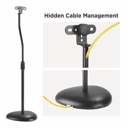 Kein Platz für Ihre Lautsprecher? Keine Lust, Löcher in die Wand zu bohren? Mit diesem Set bestehend aus zwei Lautsprecherständern ist das alles gelöst. Diese robusten und robusten Standlautsprecherständer sind universell für Lautsprecher bis zu einem maximalen Gewicht von 4,5 kg geeignet. Die Ständer sind höhenverstellbar von 78 bis 105 cm, sodass Sie Ihre Lautsprecher in der perfekten Hörhöhe positionieren können. Die Ständer sind mit einem schweren gusseisernen Fuß versehen, damit der Ständer fest steht. Für ein extrem sauberes Finish kann das Kabel sauber im Rohr geführt werden.