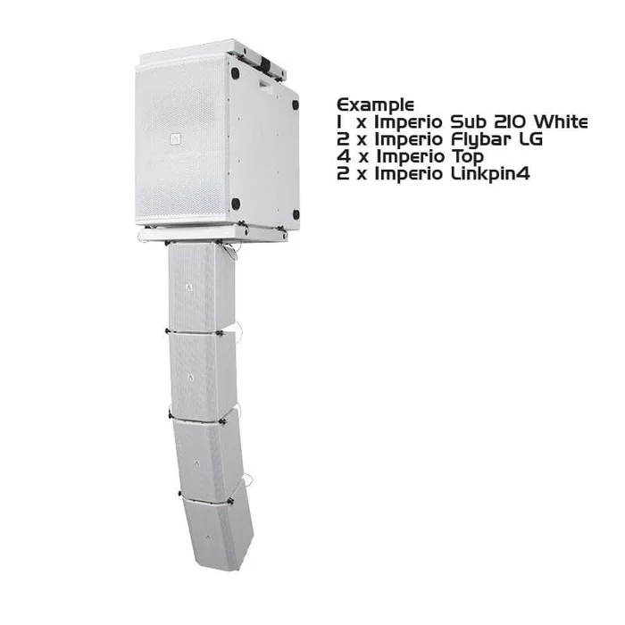 240-W-RMS-Klasse-D-Leistungsverstärker mit zwei 4,75-Zoll-Tieftönern. Teil der Imperio Mini Line Array-Serie. Weißes Gehäuse.