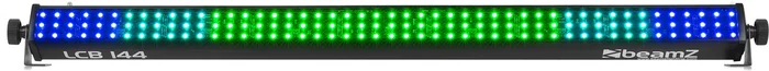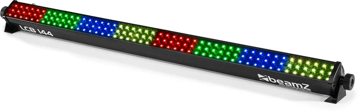 Die LCB144 ist eine LED-Leiste mit 144 Stück SMD-RGB-LEDs. Die LEDs sind in 8 separat steuerbare Abschnitte unterteilt. Jeder Bereich hat seine eigene RGB-Farbeinstellung im DMX-Modus. Bei der Verwendung des Geräts im Standalone-Modus gibt es 3 vorprogrammierte Shows, die automatisch oder soundaktiviert ablaufen können. Sie können aus den 16 vorprogrammierten automatischen Programmen wählen oder Ihre eigene Farbmischung im RGB-Modus erstellen. Der zusätzliche IEC-Ausgang ermöglicht es Ihnen, die Stromversorgung mehrerer Geräte in einer einzigen Steckdose zusammenzufassen.