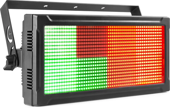 Das BS1200 Stroboskop wurde speziell für den Einsatz als Stroboskop, Blinder oder Flutlicht entwickelt, dank der 1120 SMD-LEDs. Das LED-Panel ist in 8 Bereiche unterteilt und kann dank des RGB-Mischsystems in jeder gewünschten Farbe blinken. Mit dem BS1200 lassen sich einzigartige Effekte kreieren. Die Steuerung erfolgt einfach über DMX oder im Standalone-Modus mit Automatikfunktion. Geeignet für alle Arten von Shows und Veranstaltungen.