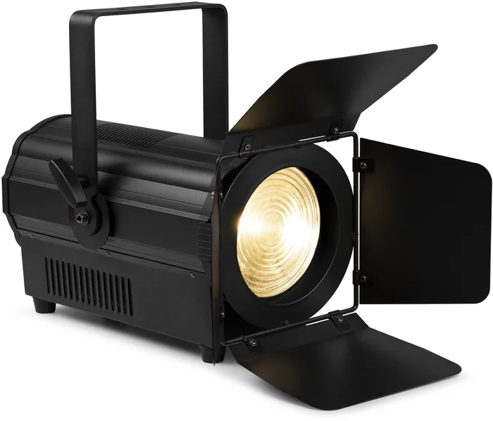 Der BTK200W Fresnel ist ein erschwinglicher Beleuchtungskörper, der dank der neuesten LED-Technologie die Beleuchtung von Bühnen, Theatern und Rundfunkstudios revolutioniert. Dieser Fresnel-Scheinwerfer verwendet eine leistungsstarke LED-Engine und garantiert ein weiches und gleichmäßig verteiltes Feld aus warmweißem Licht und dient als zeitgemäßer Ersatz für herkömmliche Fresnels. Der einstellbare, variable Abstrahlwinkel von 15-46 Grad sorgt für ein weiches, hochwertiges Lichtfeld mit >97% CRI. Der BTK200W ist standardmäßig mit PowerConnectoren und einem 3-Pin- und 5-Pin-DMX-Anschluss ausgestattet, was die Kompatibilität mit Ihrem vorhandenen Equipment und einen einfachen Installationsprozess gewährleistet. Das mitgelieferte Flügeltor sorgt für eine präzise Strahlformung und Blendreduzierung.