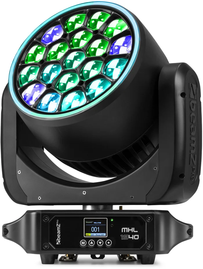 Der MHL1940 ist ein Wash-Moving Head mit linearem, motorisiertem Zoom, der mit 19 ultrahellen 40 Watt 4-in-1-LEDs nach dem neuesten Stand der Technik ausgestattet ist. Dieser Moving Head ist mit einzigartigen Linsen im Wabendesign ausgestattet und jede LED kann einzeln gesteuert werden, um erstaunliche Effekte zu erzeugen. (Kaleido-Effekte) Außerdem ist er mit extrem leistungsstarken, geräuscharmen Motoren ausgestattet, die ultraschnelle Schwenk- und Neigebewegungen ermöglichen und gleichzeitig die Geräuschentwicklung auf ein Minimum reduzieren. Perfekt geeignet für viele Veranstaltungen und Club-Installationen.