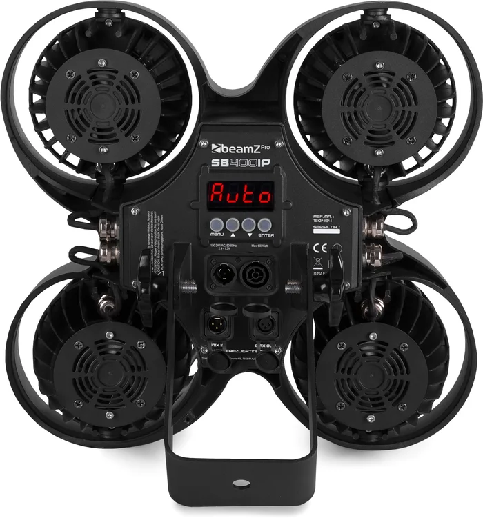 Der SB400IP Stage Blinder (Schutzklasse IP65) ist ein leistungsstarker LED-Scheinwerfer im robusten Aluminiumdesign mit 4x 100W Chip-on-Board (COB) LEDs, der zwei Effekte in seinem Gehäuse vereint. Neben dem Einsatz als Stage Blinder kann dieser Scheinwerfer auch als Stroboskop verwendet werden. Der SB400IP entspricht der blendenden Lichtleistung eines herkömmlichen Audience Blinder und kann im Standalone-Modus, im Sound-Aktivierungsmodus oder direkt über DMX in einem 4- oder 8-Kanal-Modus gesteuert werden. Die LEDs haben eine Lebenserwartung von bis zu 60.000 Stunden. Die Farbe der LEDs ist warmweiß.