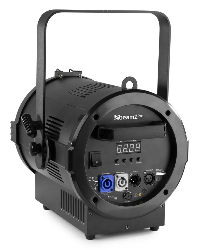 Der BeamZ Professional BTF200CZ Fresnel Zoom wird mit einer leistungsstarken 200W 4 in 1 COB LED betrieben, um eine hervorragende Farbmischung zu erzielen. Er ersetzt herkömmliche Fresnel Schewinwerfer mit 1000W Halogenleuchtmittel. Der BTF200CZ ist mit einer hochwertigen Optik und einer motorisierten 15 60 Grad Zoomfunktion ausgestattet, welche manuell am Menü oder einfach über DMX bedient wird. Er ist fein dimmbar (16Bit) und kann als Strobe mit bis zu 19 Blitzen pro Sekunde betrieben werden. Ideal für den Einsatz in Theatern, Studios, Museen, Ausstellungen oder auf Bühnen, auf denen eine besonders langlebige, energiesparende Leuchte eine gleichmäßig warmweiße oder sogar farbige Ausgabe benötigt wird. Mit Powerconnector In & Out ist ein schneller und einfacher Aufbau garantiert. Geliefert wird der Scheinwerfer mit Flügeltoren zur Strahlformung und Entblendung, Safety und Farbrahmen.