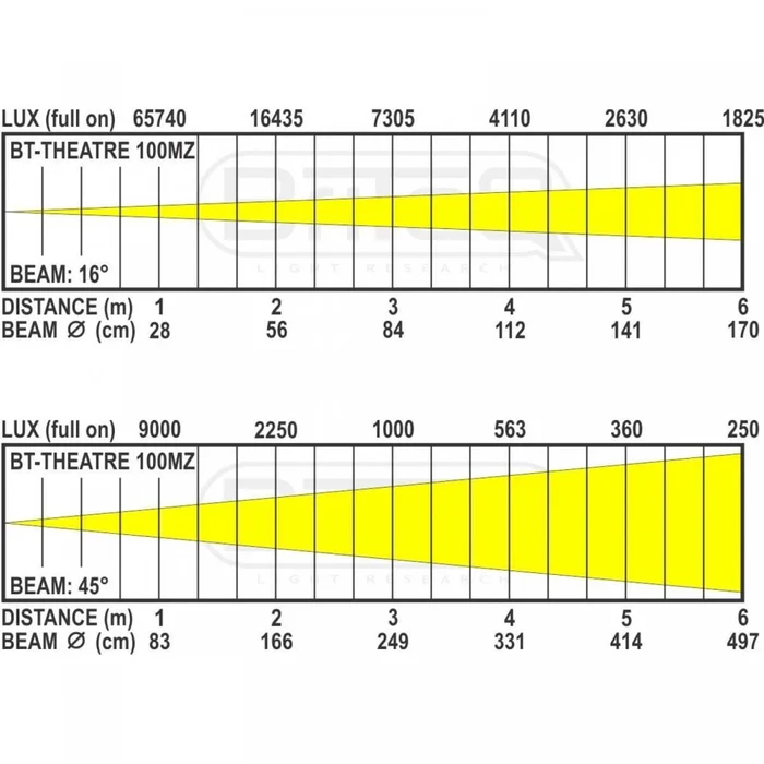Der BT-THEATRE 100MZ von Briteq ist eine leistungsstarke LED-Fresnel-Stufenlinse, mit außergewöhnlichem photometrischen/Preis-Verhältnis und einer Lichtleistung, vergleichbar mit einem 1kW-Halogen-Theaterscheinwerfern.