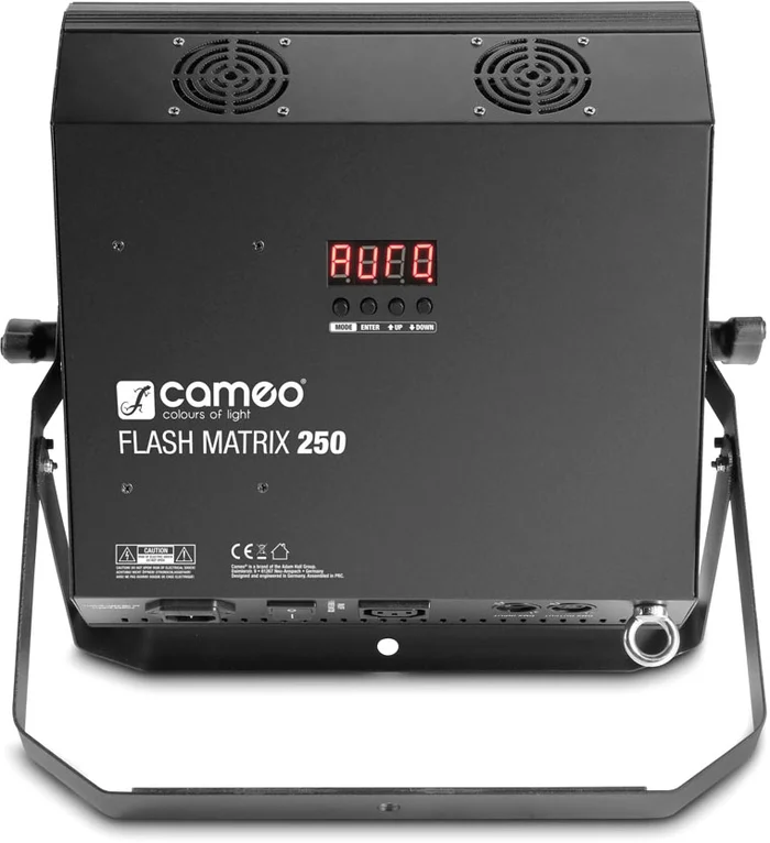 Mit 25 ultrahellen, 6 Watt starken weißen COB-LEDs in einer 5 x 5 Anordnung erzeugt die Cameo Flash Matrix 250 fantastische Strobe-, Chase- und Blinder-Effekte. Der 50° Abstrahlwinkel, die von 1 – 30 Hz variable Strobe-Geschwindigkeit und das Buchstaben- und Zahlen-Mapping des 3-in-1-Scheinwerfers garantieren eine faszinierende Performance. Die Flash Matrix 250 besitzt sieben DMX-Modi und kann mit den wirkungsvollen integrierten Programmen oder Klangsteuerung als Standalone, Master und Slave eingesetzt werden. Ein LED-Display mit 4 Knöpfen erlaubt die problemlose Konfiguration, der temperaturgesteuerte Lüfter sorgt für Kühlung und geräuschlosen Betrieb. Das Gehäuse aus Metall verfügt über DMX- und IEC-Ein- und Ausgänge zur bequemen Schaltung in Serie sowie einen verstellbaren Montagebügel.Spezifikationen: