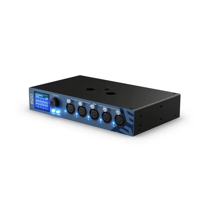 Der GN5 bietet fünf vollständig konfigurierbare DMX-Ports, die als Ein- oder Ausgänge genutzt werden können. Zudem verfügt er über zwei Netzwerkanschlüsse und kann sowohl über powerCON TRUE1 als auch über PoE mit Strom versorgt werden. Die flexiblen Montageoptionen, einschließlich M12-Gewinde für Rigging, Hutschienenadapter und 19-Zoll-Rack-Montage, machen den GN5 zu einer vielseitigen Lösung für verschiedene Installationsszenarien.