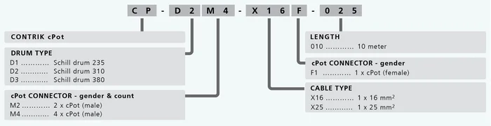 CONTRIK cPot Kabeltrommel CP-D2M4-X25F-025 – Trommel: Schill 310 mit 4xcPot-Stecker (m) Kabel: 25mm2 Gummikabel mit cPot-Stecker (f) Länge: 25m