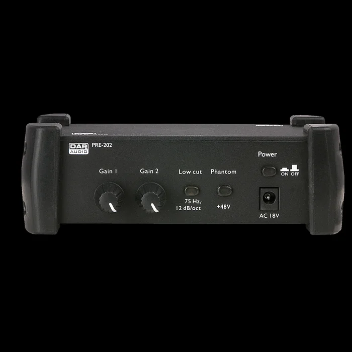 Der DAP PRE-202 ist ein rauscharmer 2-Kanal-Mikrofonverstärker mit +48-V-Phantomspeisung und Low-Cut-Funktion. An die +48-V-Phantomspeisung können Sie sowohl Kondensator- als auch dynamische Mikrofone anschließen. Seine Verstärkungsoption und die Low-Cut-Funktion helfen Ihnen, unerwünschte Hintergrundgeräusche zu vermeiden. Das Ergebnis ist eine hervorragende Ausgangsqualität.