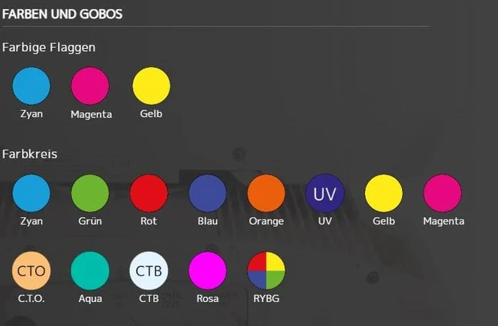 - CMY-Farbe, Gobo, Prisma Makros Motorisierter