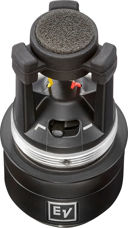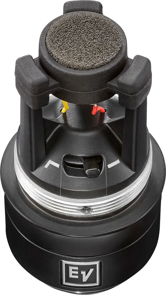 Dieser Mikrofonkopf passt sich elektrisch und mechanisch an drahtlose Handsender von Electro-Voice (und vielen anderen Marken) an, die die üblichen 3-Kontakt-Ringe mit einem Durchmesser von 1,25 Zoll und einer Kupplungskonvention mit 28 Gewinde verwenden. Der schwebende erbeutete ID-Kragen dreht sich frei, bis der Kopf fest angeschraubt wird. Es bleibt an Ort und Stelle verriegelt, wenn es vollständig angezogen ist. Dies ermöglicht die gewünschte Ausrichtung des Brandings auf den Sender.