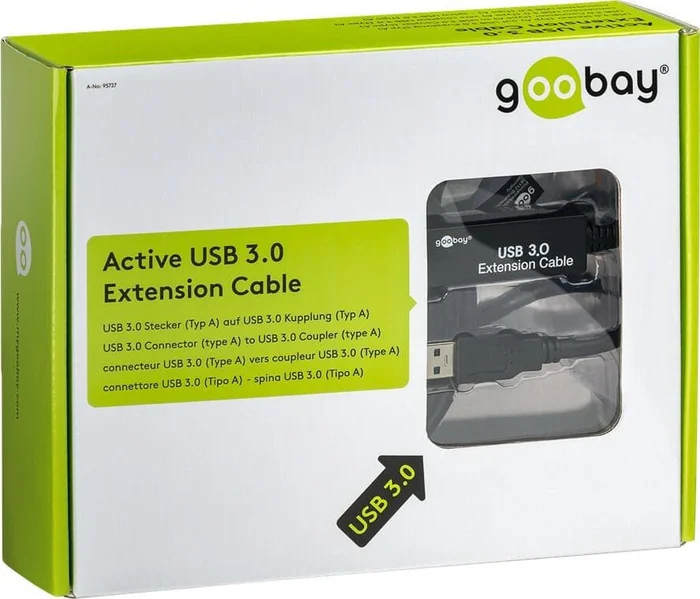 Goobay Aktives USB 3.0 Verlängerungskabel, Schwarz