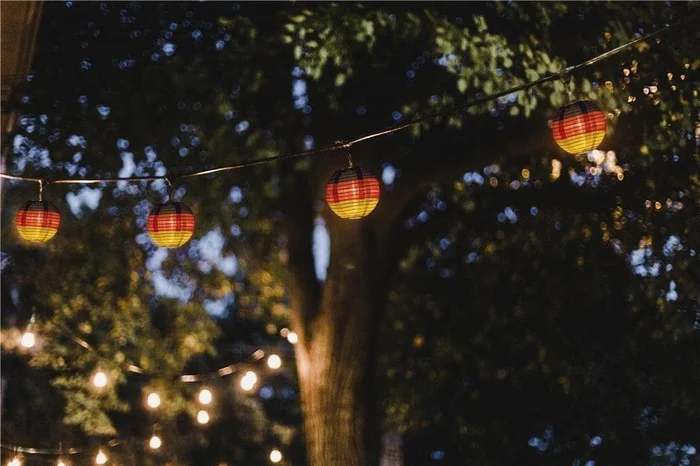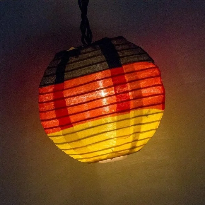 - Lichterkette mit 10 warm-weißen LED Lampions (Ø je 7,5 cm) in Schwarz-Rot-Gold