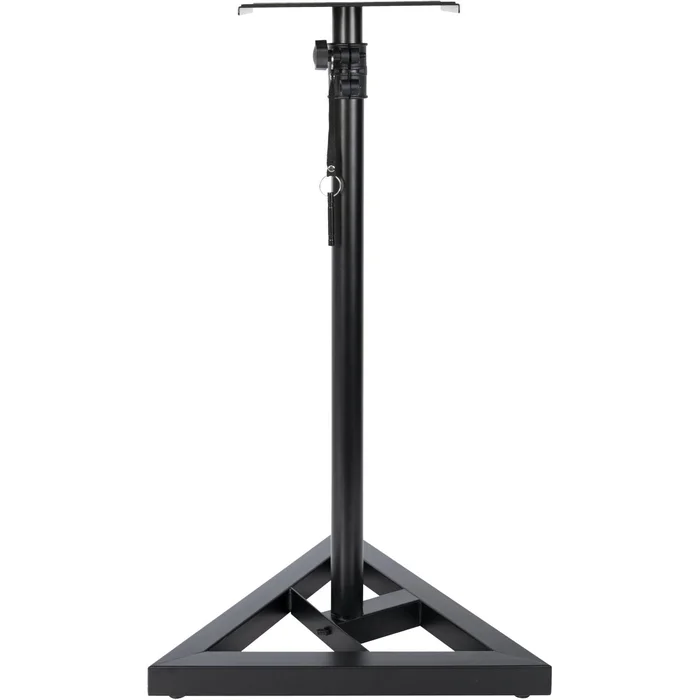 Beschreibung:Vielseitig einsetzbarer Ständer mit viereckiger Platte zum Aufstellen eines kleinen Lautsprechers, Beamers, Bühnenmonitors, Lichteffekts und v.a.m.