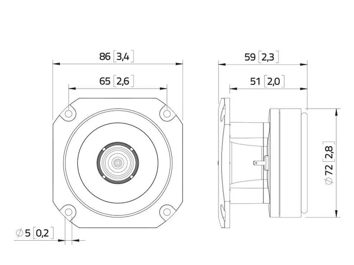 20 W AES, 8 Ohm, 106 dB, 2500-18000 Hz