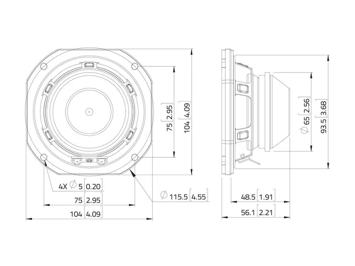 Technische Daten:Belastbarkeit:Programm: 80WNominal: 40W AESFrequenzbereich:100 – 10000 HzEmpfindlichkeit:92 dBImpedanz:8 OhmLautsprecher:4″ Tieftöner mit NeodymmagnetKorbmaterial: Stahl1″ Schwingspule TieftonGewicht:0,51 kg