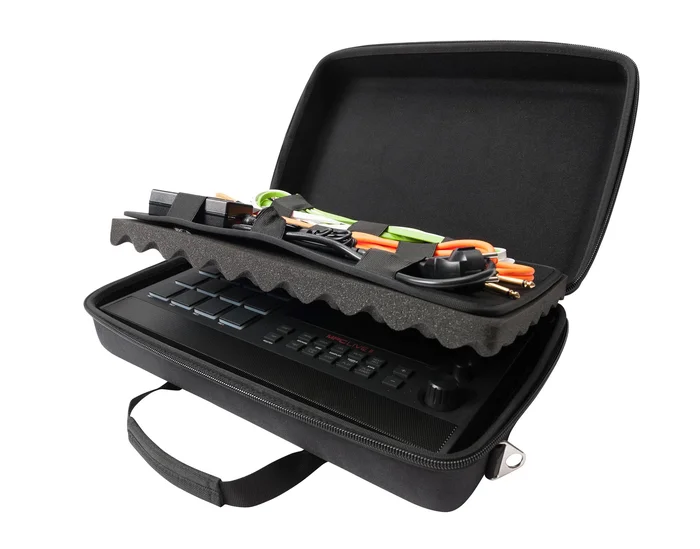 Das aus 6 mm starkem EVA Hartschaum geformte CTRL Case MPC LIVE II bietet optimalen Transportschutz für eine MPC LIVE II und ist dank seines geringen Eigengewichts sowie der handlichen Größe die ideale Alternative den Sampler sicher zum nächsten Gig oder ins Studio zu transportieren. Das integrierte Zubehör-Fach unterhalb des Deckels ermöglicht zudem eine übersichtliches Verstauen von Audiokabeln und Netzteil.