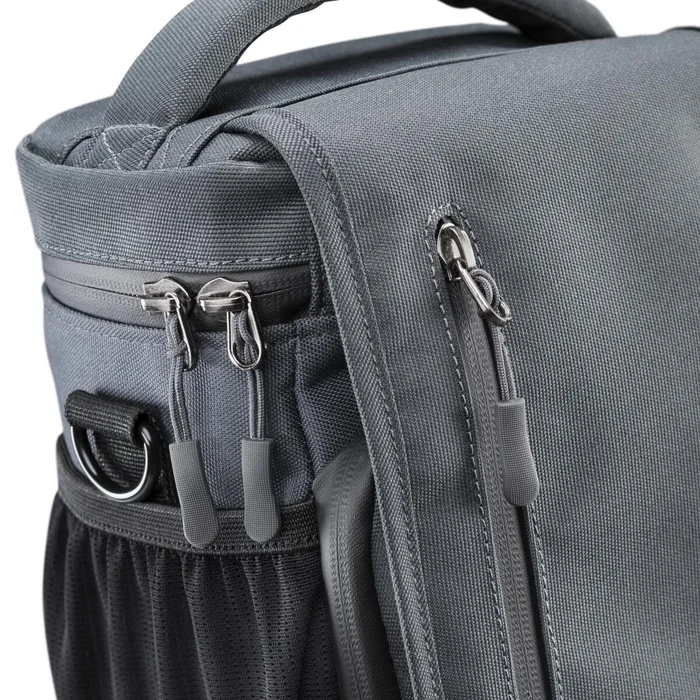 Zahlreiche zusätzliche Fächer helfen, die Ausrüstung organisiert und sicher zu verräumen. Netzfächer an beiden Seiten fassen z.B. eine Trinkflasche. Das vorne aufgesetzte Fach bietet z.B. Platz für ihr Smartphone und enthält zwei kleine Taschen für ihre Speicherkarten. Über dieser Tasche befindet sich eine Klappe zum zusätzlichen Schutz vor Regen. Sie bietet eine weitere Reißverschlusstasche für Kleinteile. Im Inneren des Deckels befindet sich ein weiteres Netzfach, das mit einem Reißverschluss ausgestattet ist. Gefütterte Trennstege im Inneren der Tasche schützen die Ausrüstung und bieten maximale Flexibilität.