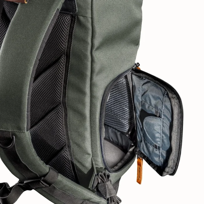 Für einen guten Tragekomfort sorgen die breiten, gepolsterten Schultergurte. Diese sind verstellbar und anatomisch geformt. An der Oberseite befindet sich zudem ein komfortabler Tragegriff mit verstärkten Nähten. Eingearbeiteter Schaumstoff schützt vor Stößen und bietet optimalen Schutz für Ihre Ausrüstung. Der Rucksack besteht aus strapazierfähigem und reißfestem Nylon. Inklusive passgenauer Regenschutzhülle.