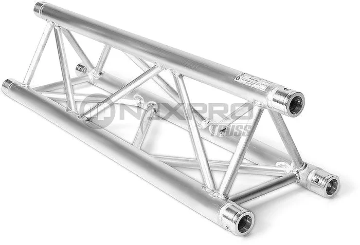 TÜV geprüftes Traversensystem in 3-Punkt Ausführung, besonders gut geeignet für den Messe- und Ladenbau, sowie Veranstaltungstechnik und als Tragsystem für Beleuchtungstechnik. Durch kompakte Bauform kombiniert mit hoher Belastbarkeit ist dieses System für den einfachen Messestand bis hin zum komplexen Rigg-Konstrukt bestens geeignet.