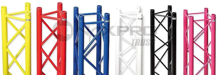 TÜV geprüftes Traversensystem in 4-Punkt Ausführung, besonders gut geeignet für den Messe- und Ladenbau, sowie Veranstaltungstechnik und als Tragsystem für Beleuchtungstechnik. Durch kompakte Bauform kombiniert mit hoher Belastbarkeit ist dieses System für den einfachen Messestand bis hin zum komplexen Rigg-Konstrukt bestens geeignet.