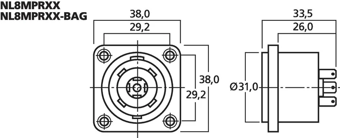 NEUTRIK-SPEAKON-Einbaubuchse